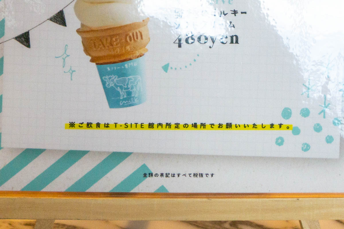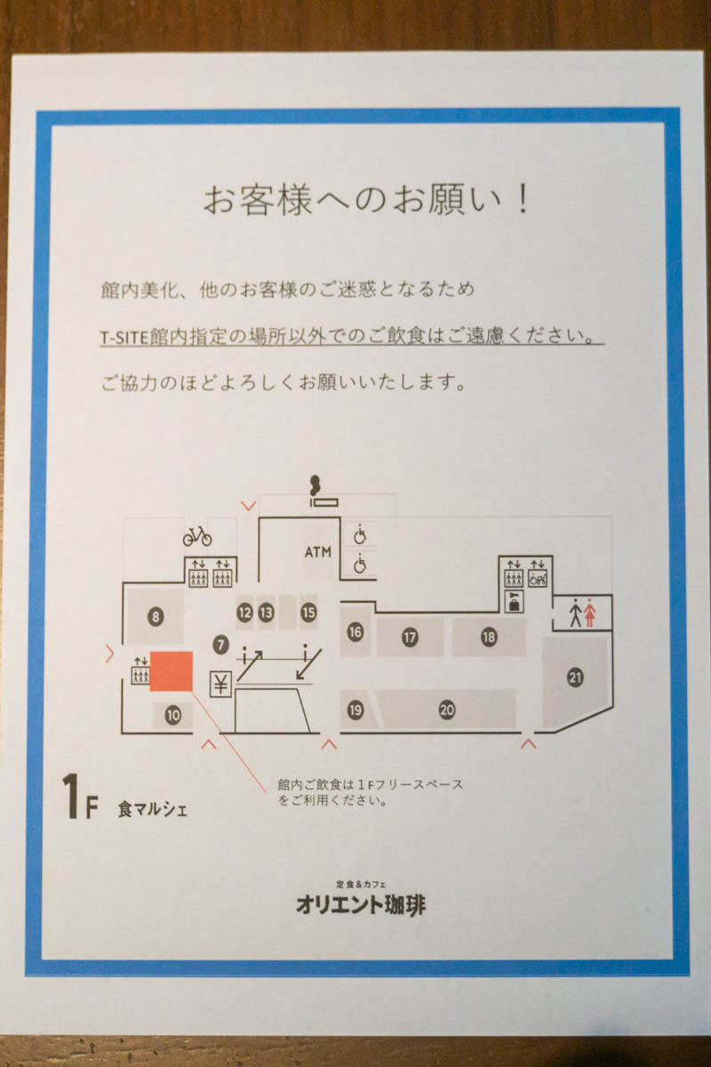 テイクアウトの飲食はT-SITE館内所定の場所でお願いしますとのこと。